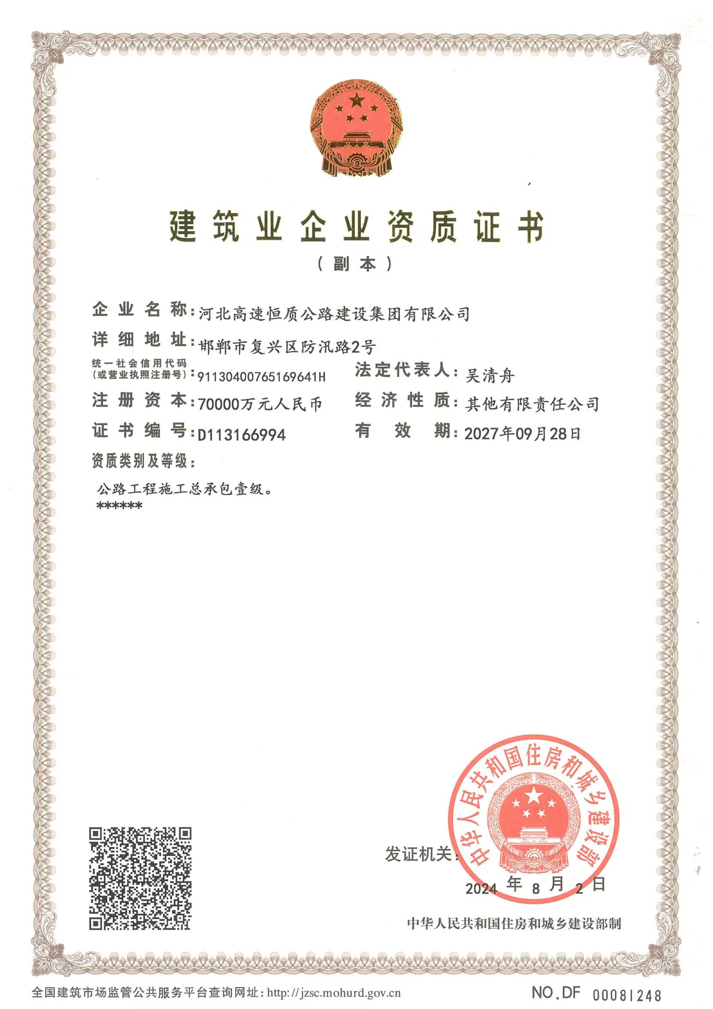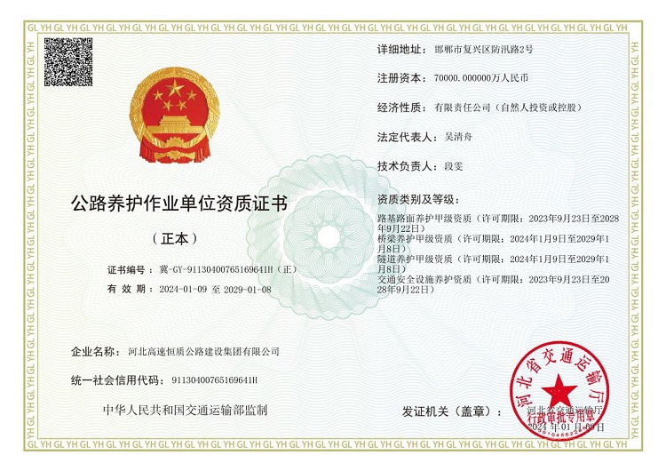 河北高速恒質(zhì)公路建設(shè)集團(tuán)有限公司始建于2004年,前身是邯鄲市恒質(zhì)公路建設(shè)集團(tuán)有限公司。2024年7月成為河北高速公路集團(tuán)有限公司二級(jí)子公司,現(xiàn)有職工500余人,下轄18家子公司13個(gè)分公司,參股公司3家 ,注冊資本7億元,是一家集公路工程施工、路用材料研發(fā)生產(chǎn)、試驗(yàn)檢測、瀝青貿(mào)易、公鐵物流于一體的多元化、綜合性單位,國家級(jí)高新技術(shù)企業(yè),河北省專精特新中小企業(yè),河北省首家瀝青拌合環(huán)保引領(lǐng)性企業(yè)。公司擁有公路工程總承包壹級(jí)、公路交通工程(公路安全設(shè)施)專業(yè)承包壹級(jí)、機(jī)電工程施工總承包貳級(jí)、電力工程施工總承包貳級(jí)、市政公用工程施工總承包貳級(jí)、建筑工...